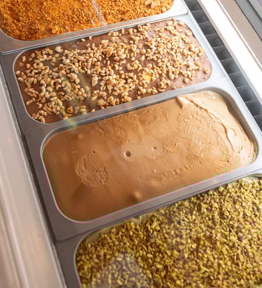 Se refresque com saúde: opções como doce de leite, cookie and cream, pistache e opções de sorbet como, frutas vermelhas e maracujá com manga.